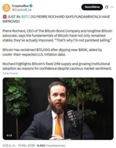 Rochard se refirió a la reciente caída como que “no es una venta por pánico” y que los fundamentos de Bitcoin no se han debilitado. “Por eso no me preocupa vender”.