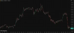 En la siguiente gráfica de TradingView se aprecia el descenso protagonizado por BTC este miércoles 12 de noviembre:
