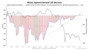Según la proveedora de datos CryptoQuant, la métrica de demanda neta (que mide la capacidad de absorción del mercado) había marcado mínimos muy negativos durante diciembre y enero.