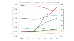 A pesar de esto, admiten que su crecimiento es explosivo en los últimos años. Esto debido a que pasaron de casi cero en 2020 a representar entre 1,5% y 2,7% de los depósitos totales en 2024. Así se muestra en el siguiente gráfico de la institución multilateral: