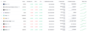 Entre los más 5 destacados aparecen river (river), artificial superintelligence alliance (FET), bittensor (TAO), memecore (M) y kaspa (KAS), tal como se observa a continuación: