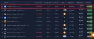 Con el precio de ALEO en 0,27 dólares por unidad, tras un incremento mensual cercano al 24%, el AE3 estaría generando actualmente 55,48 dólares netos al día al descontar el costo eléctrico bajo un precio de referencia de 0,10 dólares por kilovatio hora (KWh).
