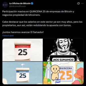 Diversas empresas que operan con la tecnología Bitcoin y negocios de entusiastas del activo digital han confirmado su participación masiva en la iniciativa denominada «Quincena 25» en El Salvador.