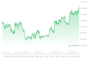 Bitcoin supera los 77.000 dólares.