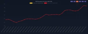 En el último mes, el precio del USDT subió en un 40%, pasando de 214 bolívares a los vigentes 300 bolívares, tal como se aprecia en el siguiente gráfico provisto por el sitio de seguimiento P2P.Army.