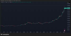 El oro alcanzó récord de precios en enero. Fuente: TradingView.