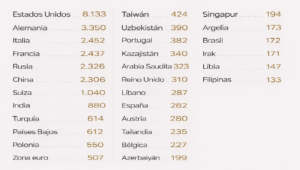Mayores reservas estatales de oro (en toneladas). Fuente: CriptoNoticias.